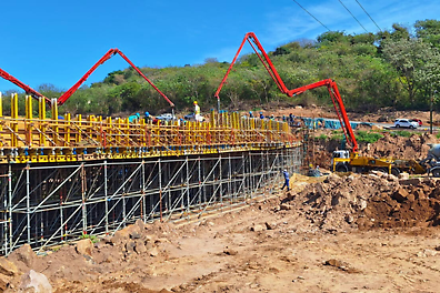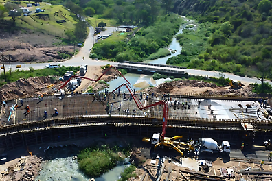 A Concrete pour on the PERI QUICKSHORE-supported bridge deck