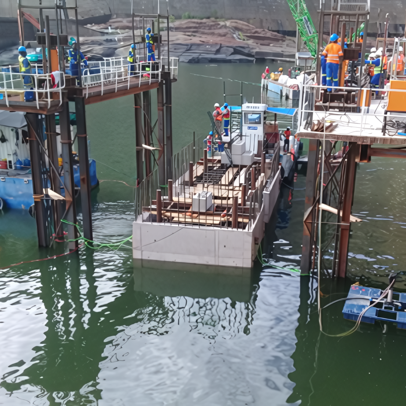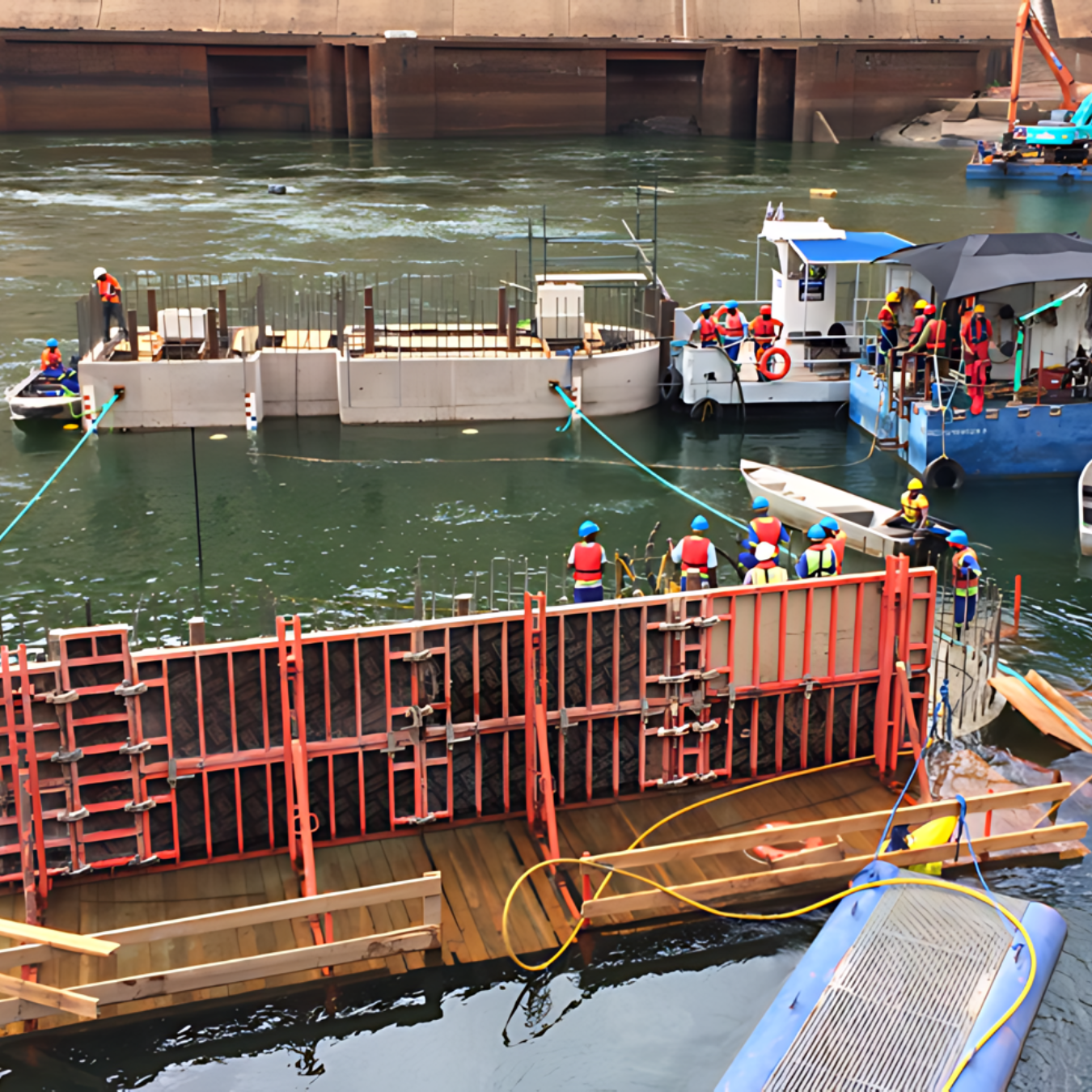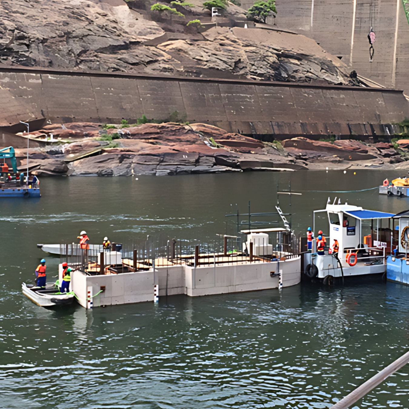 The Kariba Plunge Pool Reshaping project, undertaken by Razel-Bec. The project involved the meticulous reshaping of the plunge pool at the Kariba Dam, an essential infrastructure upgrade to ensure the dam's continued safety and functionality. Key activities included the installation of piers, construction of a coffer dam, and extensive dewatering efforts .