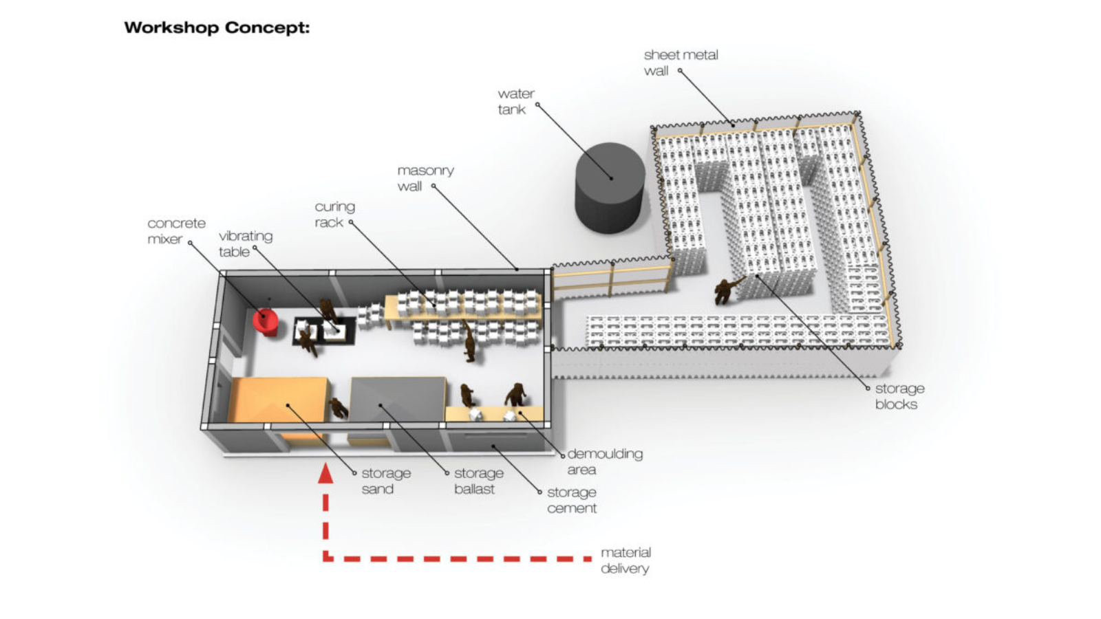 Interested in producing Twist Blocks locally?This section provides an overview of the equipment, materials, and processes required to start your own small scale Twist Block production facility. It also includes guidance on how to build with Twist Blocks once produced, from factory setup to on site construction, using tutorials and step by step guides created by Start Somewhere.